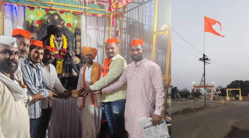 ढवळगाव मध्ये शिव जयंती निमीत्त ७५ फुट भगवा ध्वज चे लोकार्पण